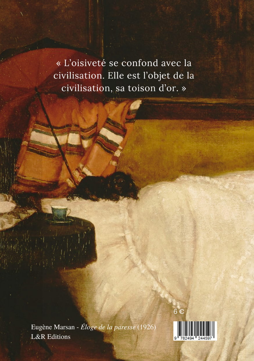 Véritable hymne à la lenteur, l’Éloge de la paresse de Marsan est un texte à picorer comme une série de petites douceurs, à savourer sans urgence. C’est un jardin secret où l’on se promène sans hâte, où l’on s’épanouit au rythme des saisons et des anecdotes. Le livre est aussi une réponse au Droit à la paresse de Lafargue, manifeste social et politique, là où l’éloge de Marsan épouse les contours de son sujet, en dilettante, pour proposer une vision littéraire et bucolique de l’oisiveté.